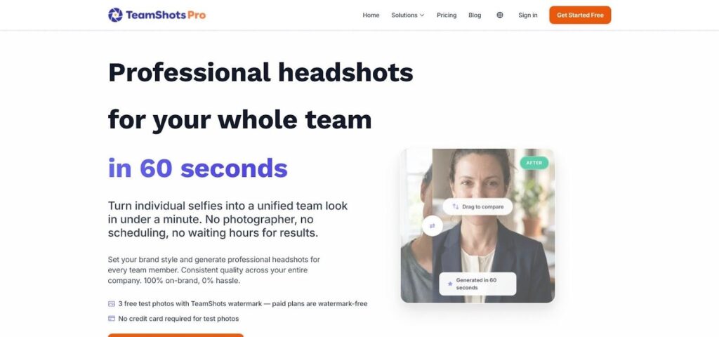 TeamShotsPro is built for moments when you need headshots yesterday. Upload three selfies, press generate, and ten ready-to-use portraits appear in about sixty seconds. It was the only service in our test that finished before the coffee maker beeped.
