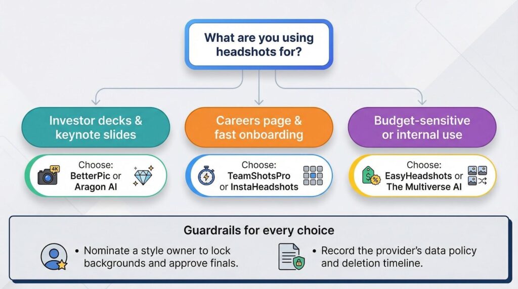 First, we set five must-haves for a remote-team headshot service: realism, cost per employee, turnaround speed, admin controls for brand consistency, and clear data-privacy language. If any of those fall short, the risk shifts to HR.