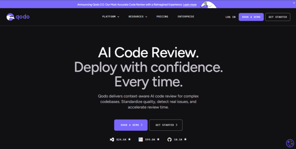 Previously known as CodiumAI, Qodo is one of the best AI code review tools that elevate code reviews by combining review feedback with test generation.