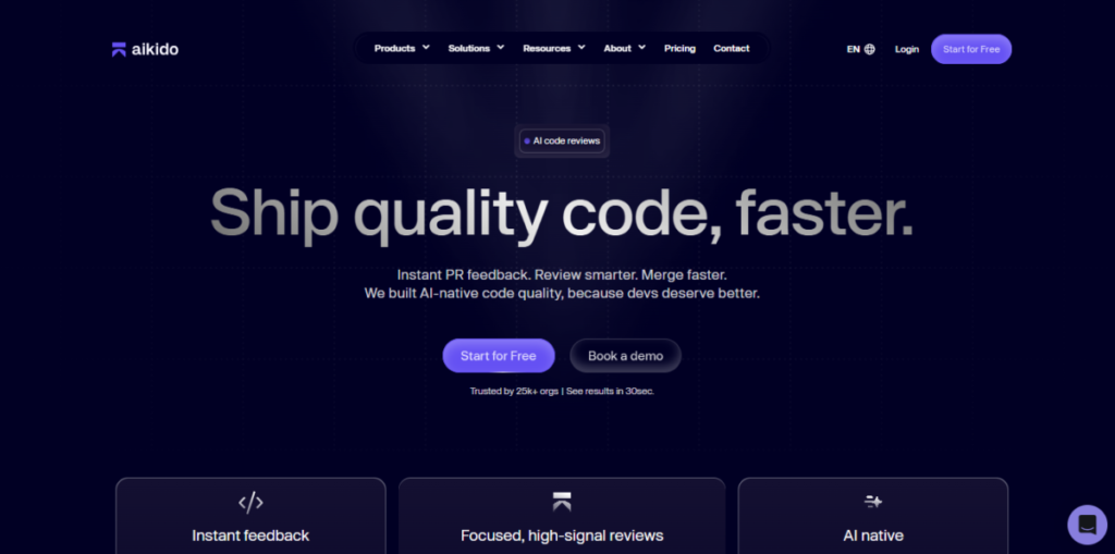 Aikido is a top AI code reviewer that focuses entirely on quality enforcement. Most developers often underestimate consistent code quality at scale, but Aikido focuses on that.