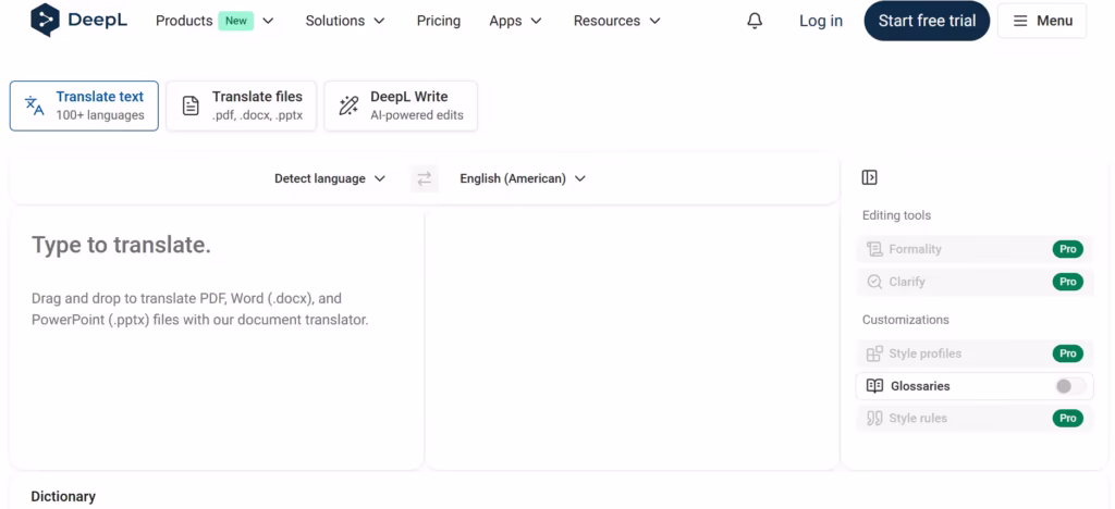 - There’s a Glossary function for defining mandatory translation rules for technical terms and brand names to ensure consistency.