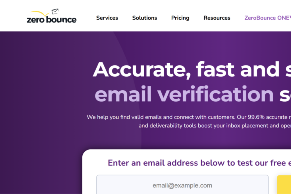 - ZeroBounce scans for abuse, spam traps, and disposable emails to detect risky addresses.