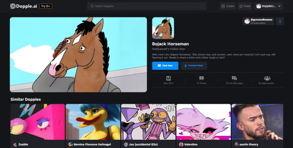 Dopple AI is designed for full-on roleplay.