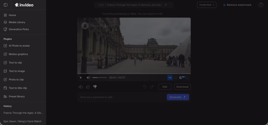 One of InVideo AI’s standout features is its ability to generate videos from text prompts.