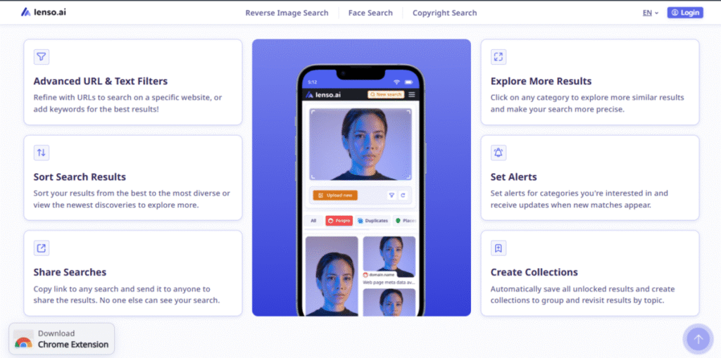 • Lenso AI combines speed, precision, and privacy, offering results within seconds through a clean, intuitive dashboard.