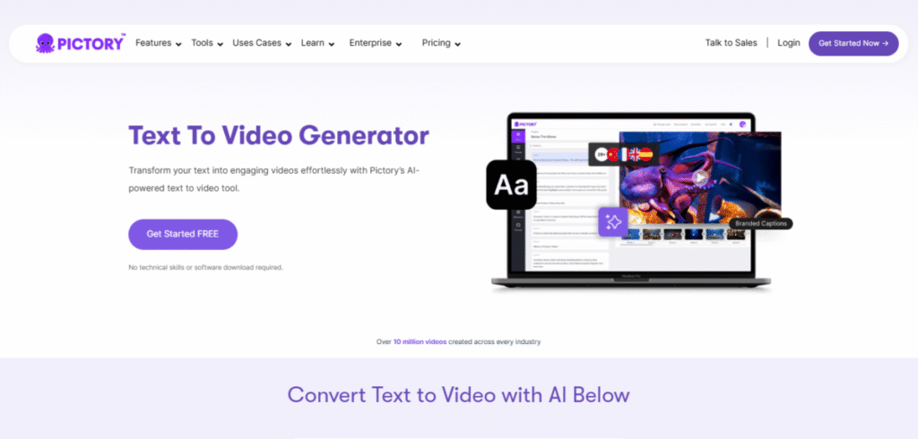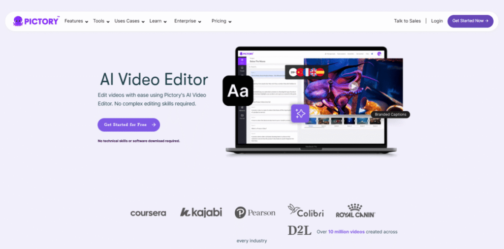 Pictory’s text-to-video feature turns written content into engaging videos.