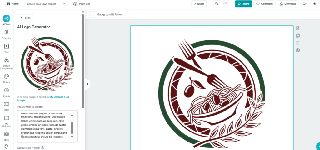 I decided to explore the logo design option using a prompt with details for an Italian restaurant.