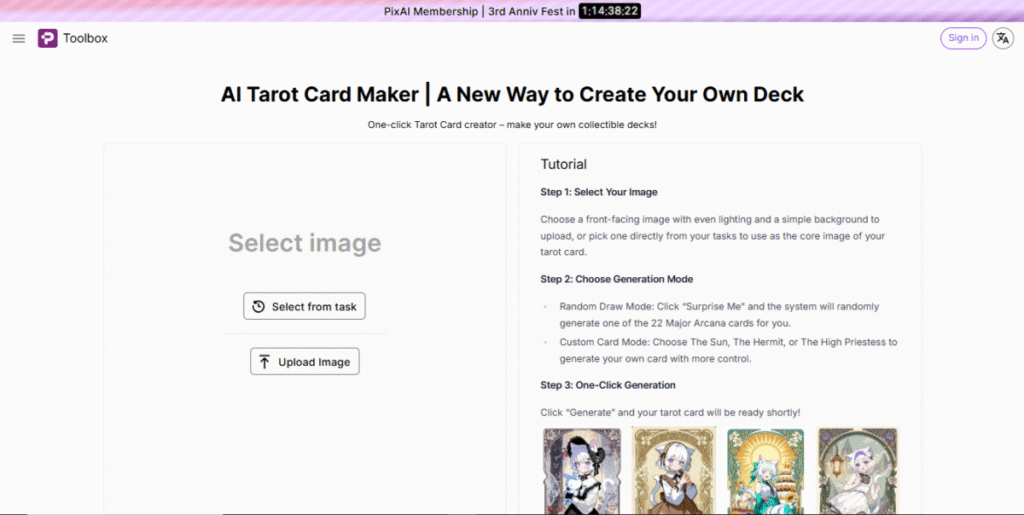 If you’ve ever wanted to design your own mystical deck, Pix AI makes it surprisingly easy.