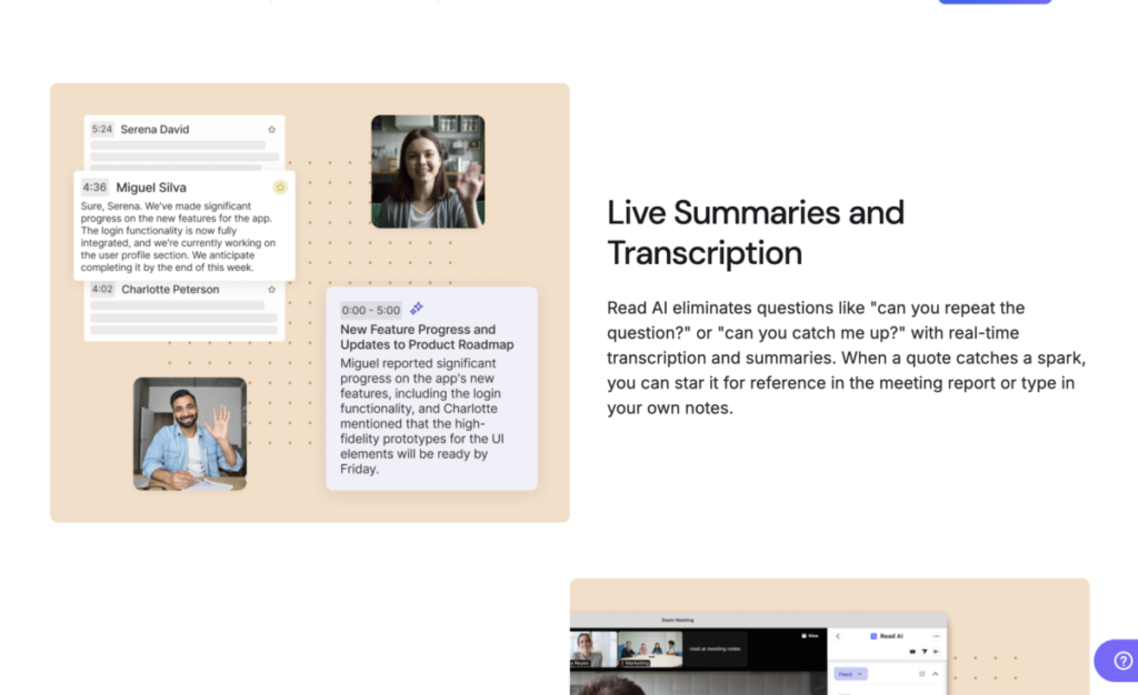 While the meeting is happening, Read AI can provide live notes, metrics, and even coaching tips that help you speak more clearly or stay focused on priorities.