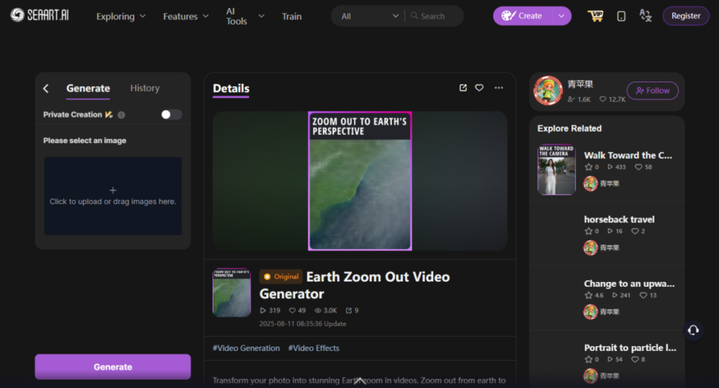 SeaArt goes beyond images, you can also create videos from text or still images, adding motion to your creative ideas.