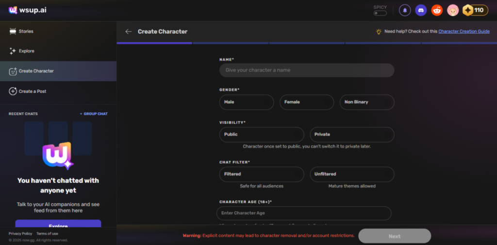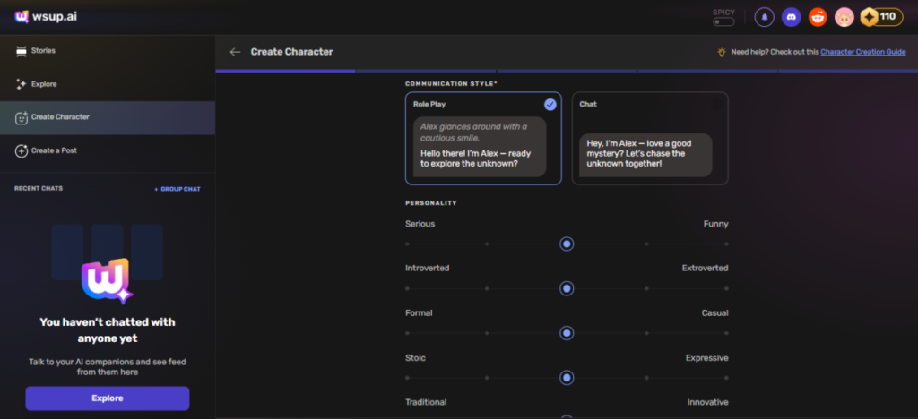 In short, Wsup AI is about having someone to talk to, roleplay with, or just unwind with.