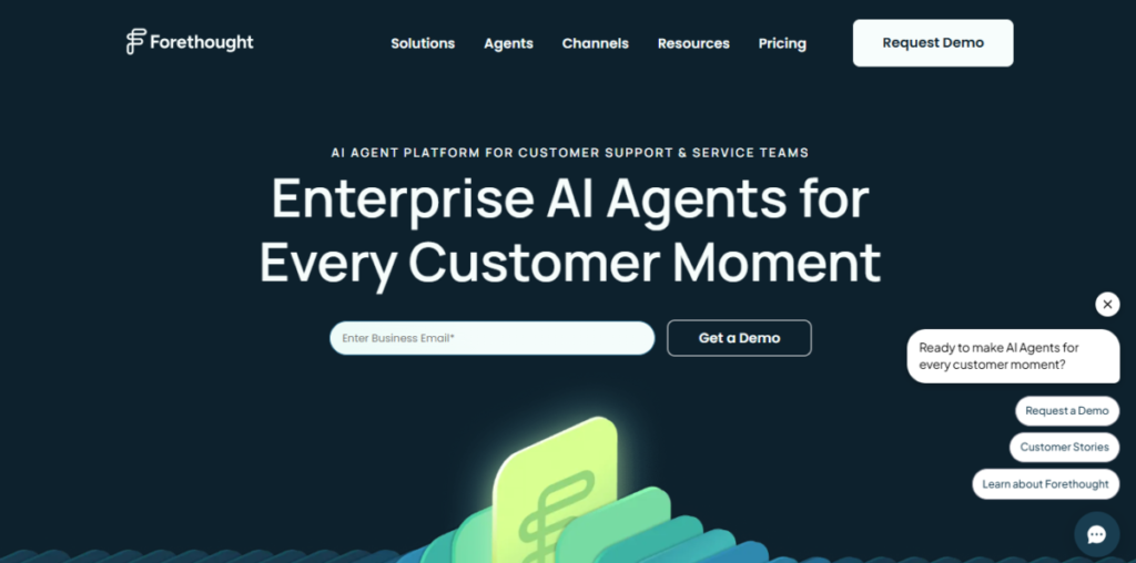 Instead of just assisting agents, Forethought focuses on full ticket resolution. Its autonomous AI agents can solve over 60% of support tickets from start to finish.