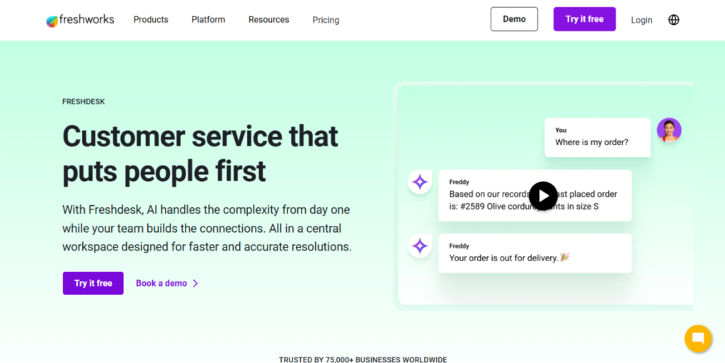For growing teams that want reliable AI for customer service without the complexity of enterprise-level solutions, Freshdesk hits a sweet spot. It’s practical, fast, and friendly to new users.