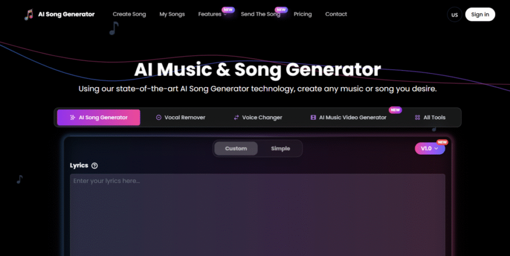 This tool keeps things simple. It’s built for anyone who wants to immediately turn text into a full song. You simply type in a topic or some lyrics, and the AI produces both the melody and the vocals.