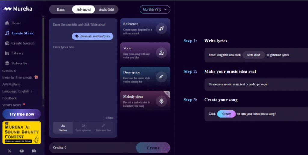 - Lyric integration – Add your own words or let the AI write them for you, and hear how they sound in song.