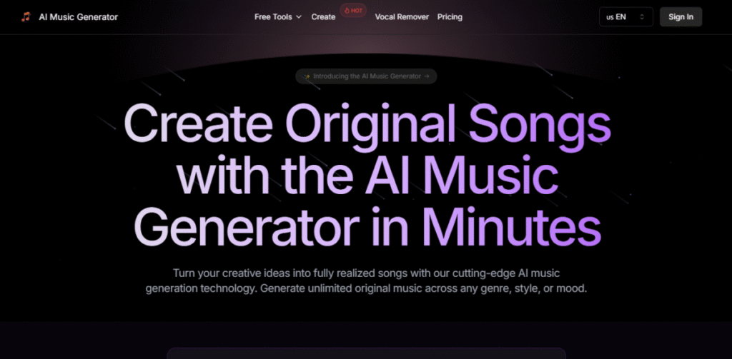 - Unlimited music across genres – From hip-hop to EDM to cinematic soundscapes, the generator adapts to your chosen genre, style, or mood.