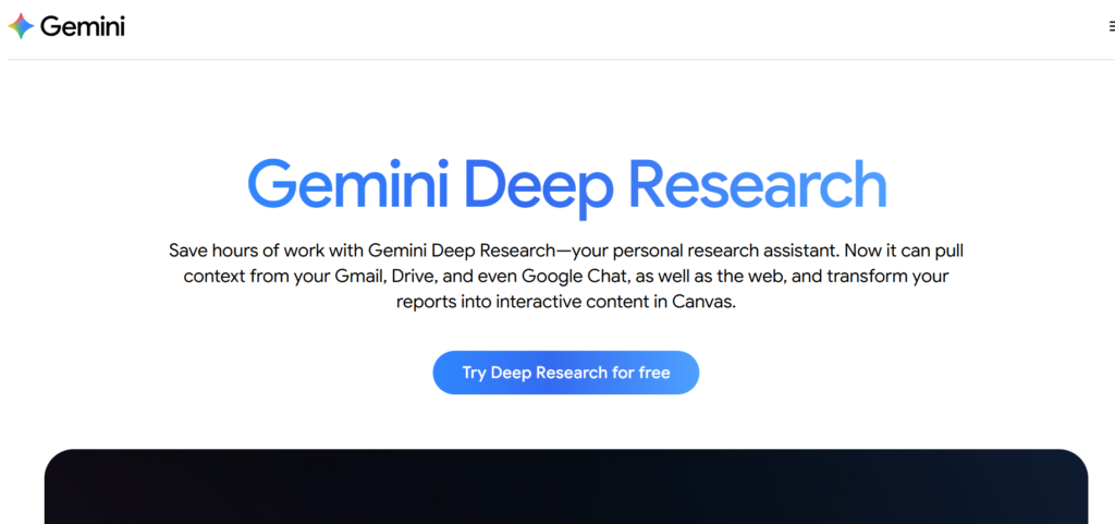 - Gemini Deep Research analyzes large sets of information to generate structured research summaries.