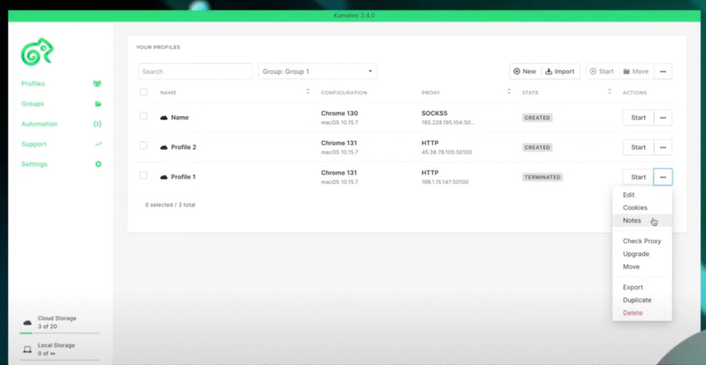 GoLogin’s core strength lies in its precise browser fingerprint control — users can configure each profile with unique hardware, timezone, WebRTC, and canvas signatures, all stored securely in the cloud. Unlike older desktop-only tools, GoLogin allows teams to log in from any device, syncing environments seamlessly without leaks.