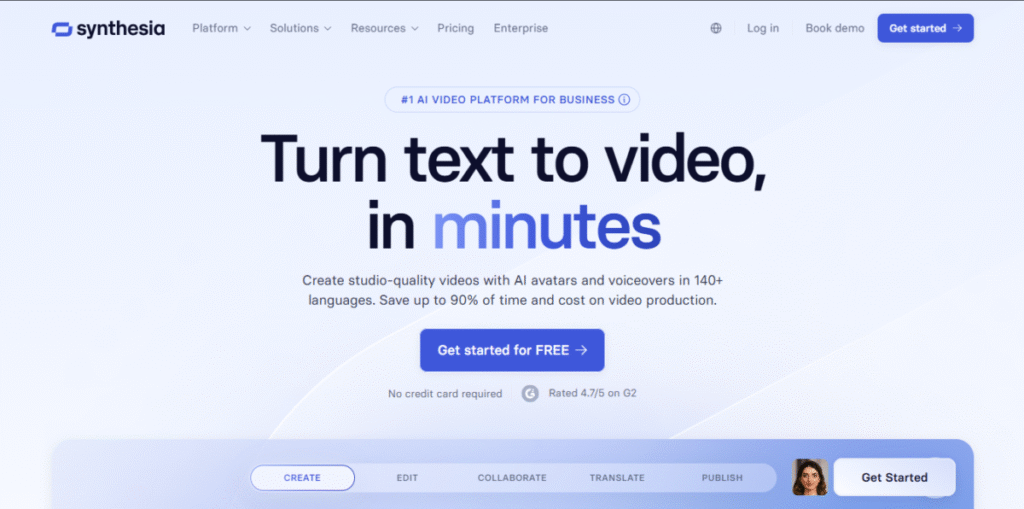 Synthesia is one of the most recognized names in AI video creation, especially in the corporate and professional world.