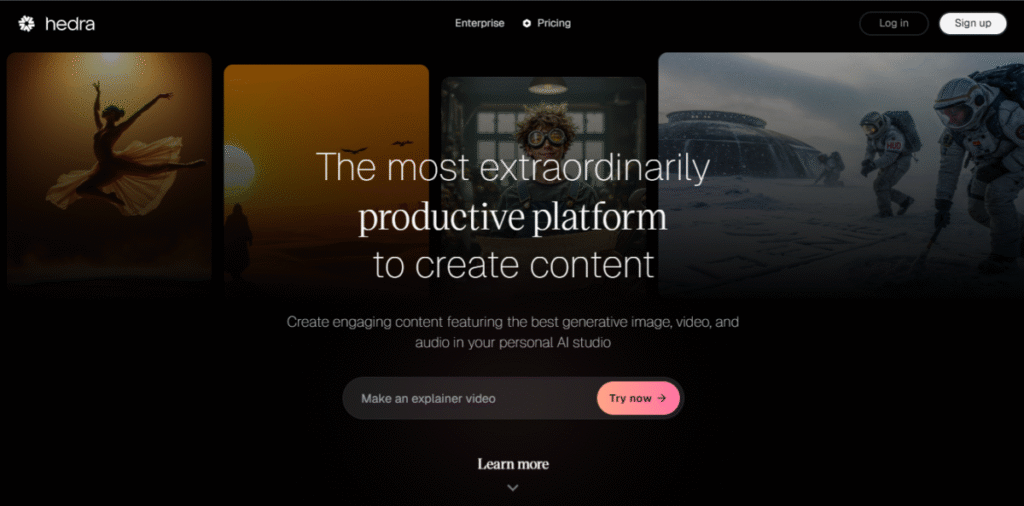 | Hedra | Multi-modal AI content | Video, text, audio generation, flexible AI workflows | $24/Month | Moderate to Hard | High | Multimedia creators, AI-savvy users |