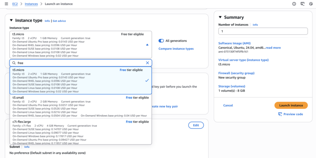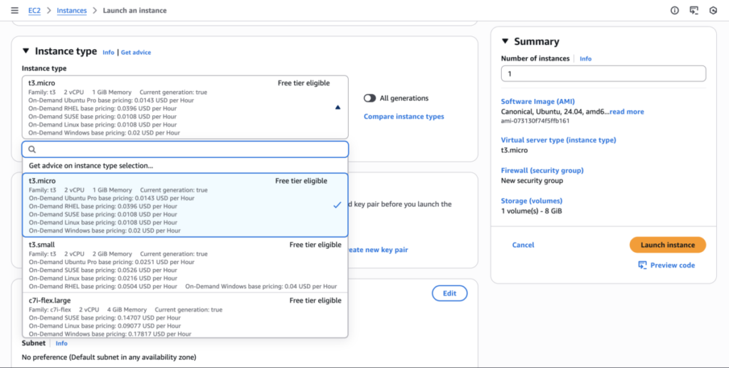 Click the dropdown arrow next to “Instance type”