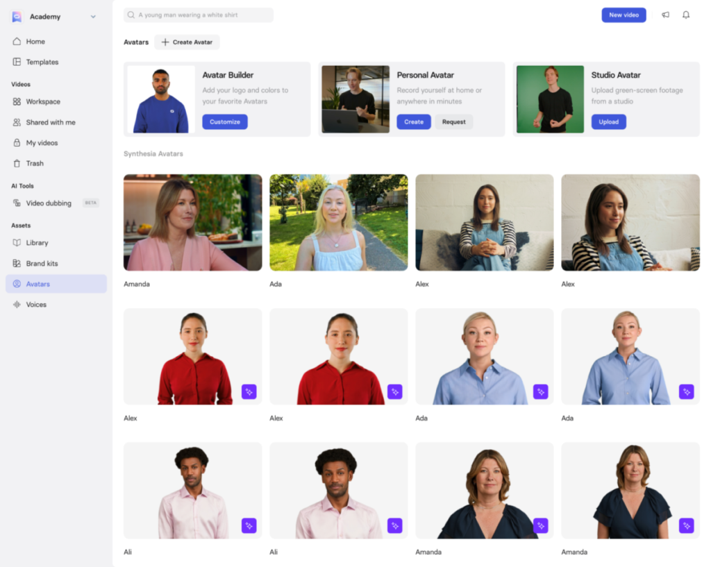 For people who require a quick and easy solution, several AI avatar tools come with predefined avatars. These are ready to use to make AI avatar videos and give you great visuals with little to no setup.