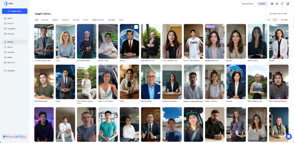 - JoggAI: Offers a variety of avatar creation features, including custom avatars, photo-to-avatar, and text-to-avatar. Great for both corporations and content providers.