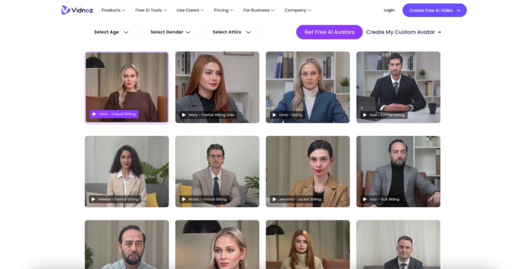 - Vidnoz: It is another easy way to make AI avatars and videos. It has a lot of standard avatars and ways to change them.