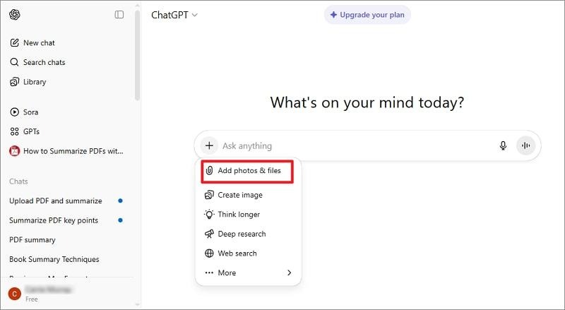Upload your PDF that you want to summarize (or copy some text from the PDF).