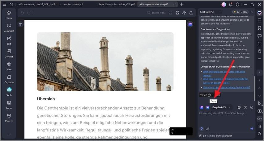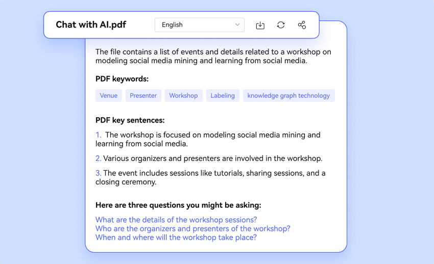 Edit or refine the summary if needed, then export or copy it. Or you can ask questions about PDF in the chat box to better understand the context.