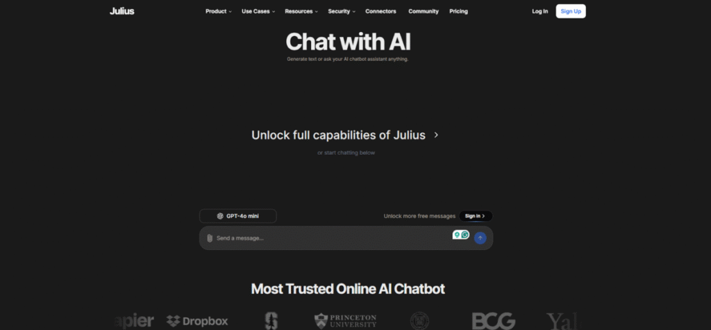 Julius AI Chat works with company data. The basic functionality requires that it be connected to CRM systems and customer databases. This synchrony allows it to pull live information during conversations.