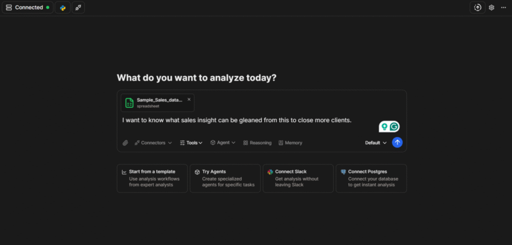 Julius AI is primarily a data analysis tool that extracts information from datasets using natural language prompts. Instead of writing complex code or formulas, users of Julius AI can upload data and chat with the tool to identify trends, patterns, visualizations, and reports.
