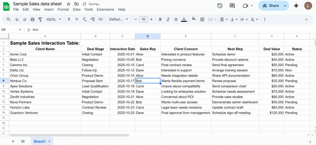 Julius AI Chat can distill complex discussions into clear, structured notes. After a conversation, the AI creates concise deal summaries and meeting recaps. The summaries are well-detailed and capture key points like client concerns, next steps, and potential opportunities.