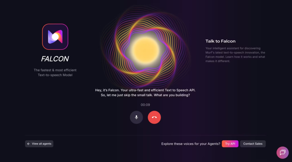 Murf’s Falcon model, launched in November 2025, is built specifically for real-time voice agent applications. It delivers 55 milliseconds of model latency and 130 milliseconds time-to-first-audio across 33 global locations.