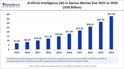 This attention is backed by market research in equally good economic indicators. Precedence Research estimates the global market of artificial intelligence (AI) in games at USD 5.85 billion in 2024, and forecasted that the market would increase to between USD 7.05 billion in 2025 up to about USD 37.89 billion in 2034 with a compound annual growth rate (CAGR) of 20.54. In 2024, however, the highest market share was recorded in North America with 39 percent with Asia Pacific set to expand at the quickest rate.