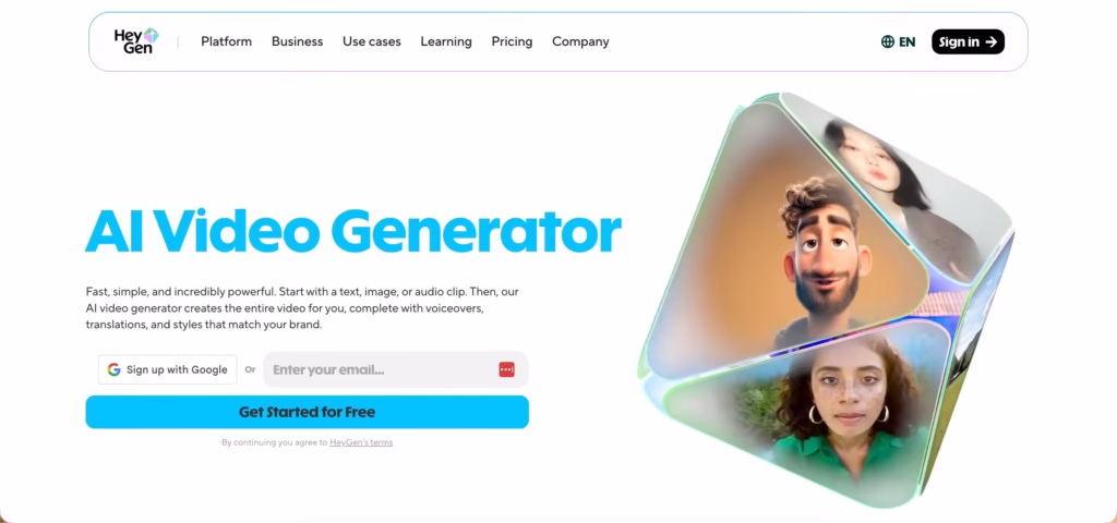 - Video Translation – Upload any video and HeyGen translates and re-voices it in a target language, with lip-sync adjusted to match.