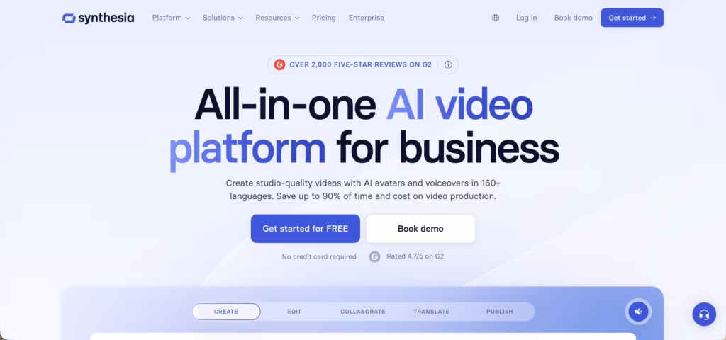 Synthesia is widely known as a video creation tool, but its dubbing feature deserves equal recognition. It dubs videos into over 30 languages using virtual presenters. Users input script, and this is translated into videos in a realistic and human-like manner. The tool is ideal for product walk-throughs, policy videos, or onboarding decks.