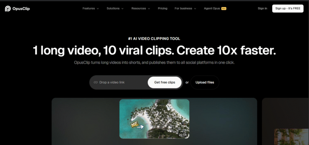 That’s where OpusClip shines. It’s an AI video editor built to repurpose long-form videos into short, punchy clips that grab attention on social media.