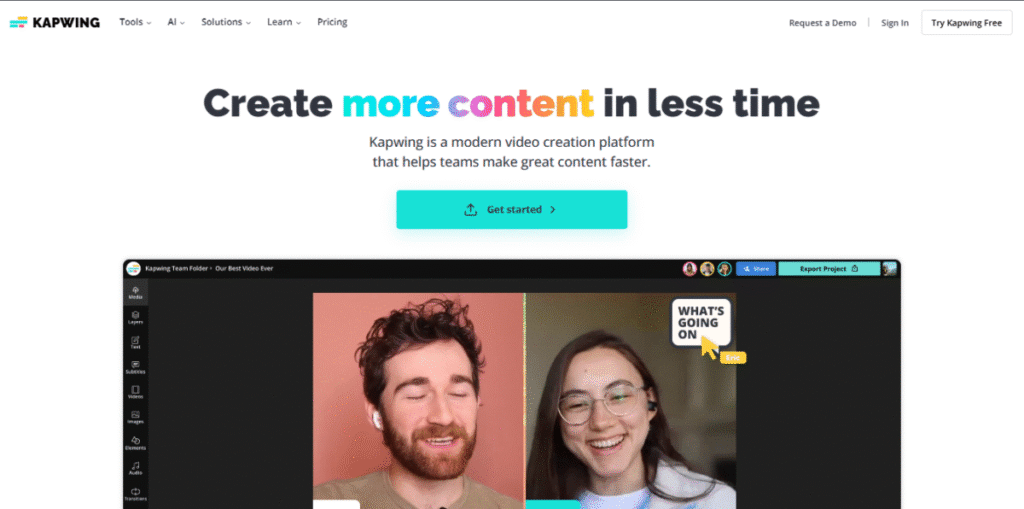 Kapwing is loved by creators, marketers, and meme-makers alike. It combines powerful AI tools with a clean, beginner-friendly interface.