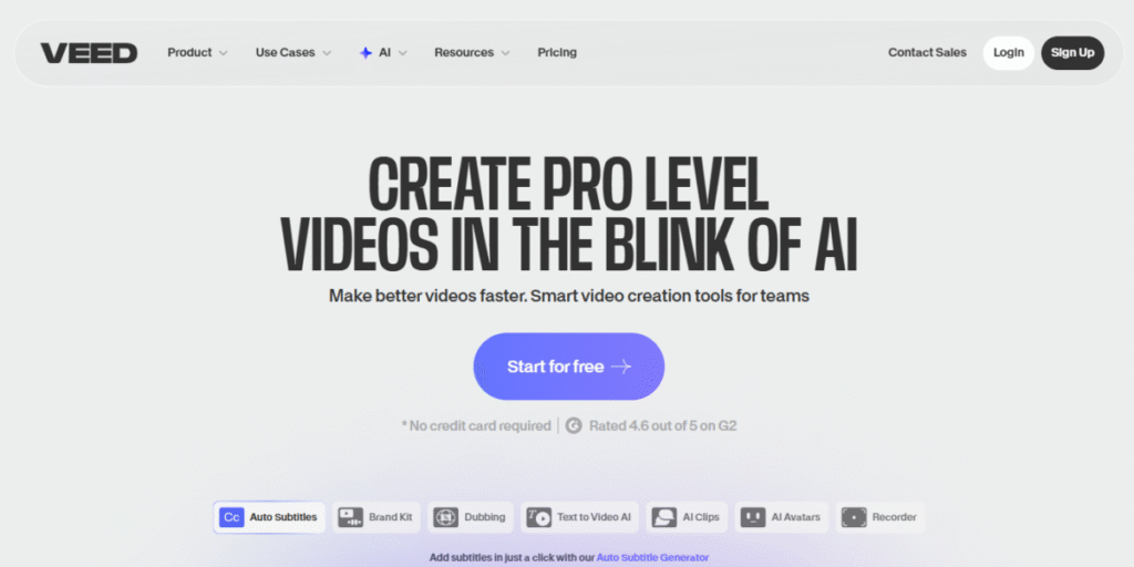 Known for its smooth interface and smart automation, Veed is built for creators who want professional results without the learning curve.